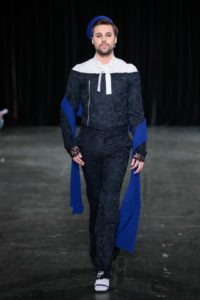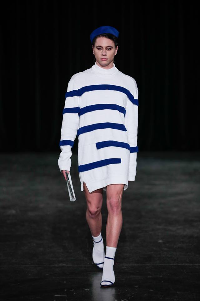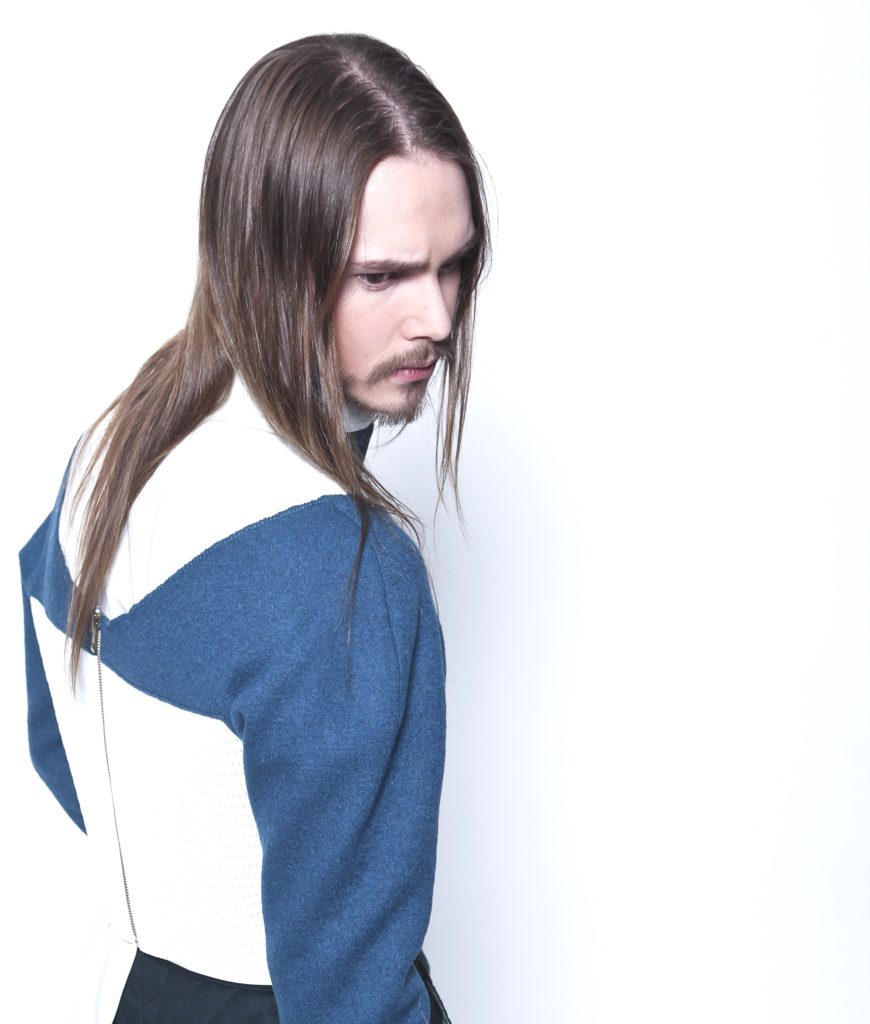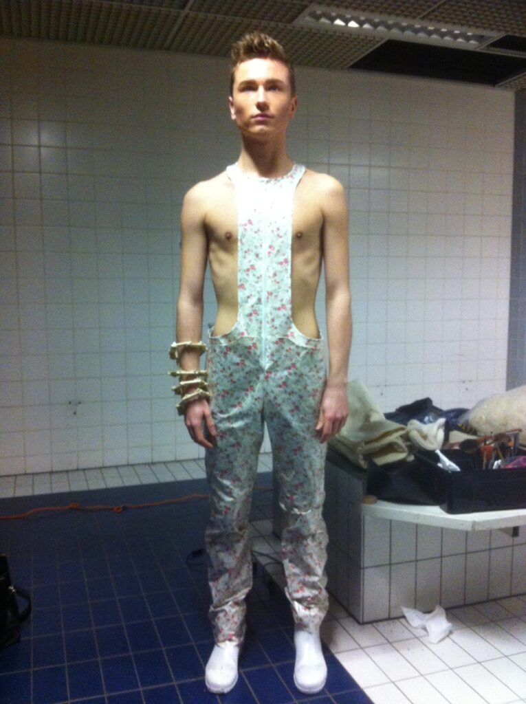 ‘The new sailor’ is daarmee een uitnodiging om opnieuw over jezelf na te denken. Om te laten zien dat je zelf de elementen kunt kiezen waar jij je prettig bij voelt. De hoop en overtui- ging van deze collectie is dat die man op naaldhakken uit- eindelijk geen karikatuur van een man of een vrouw is, maar een mensbeeld waar we zonder waardeoordeel naar kunnen kijken. Om uiteindelijk zonder waardeoordeel naar onszelf, onze gedragingen en onze voorkeuren te kijken – en daarmee naar die van alle mensen om ons heen.